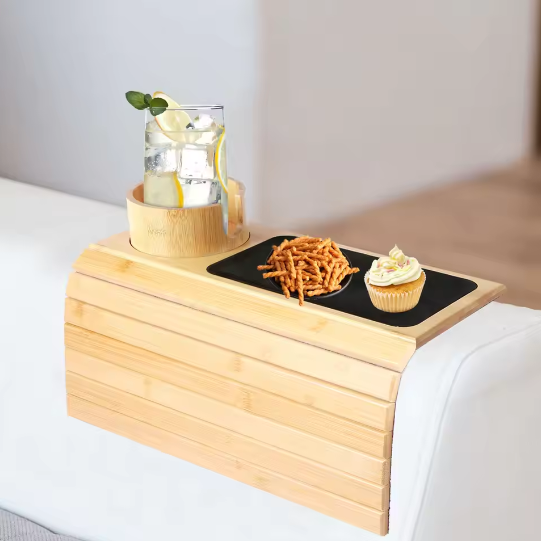 Perfect for movie nights, gaming, tea time, and daily living room comfort, this couch arm tray adds a clean natural look and helps keep your sofa area organized.